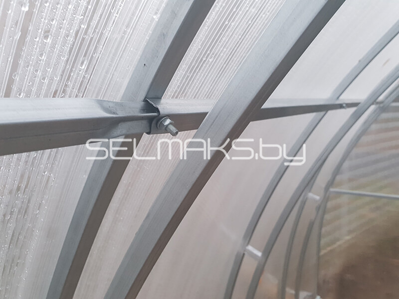 Такое соединение у наших теплиц. Цельное соединение без лишних швов более надежно и крепче.