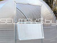В комплекте идут две двери и две форточки, которые обеспечивают правильный режим проветривания, создающий благоприятный микроклимат для получения богатого урожая в теплице.