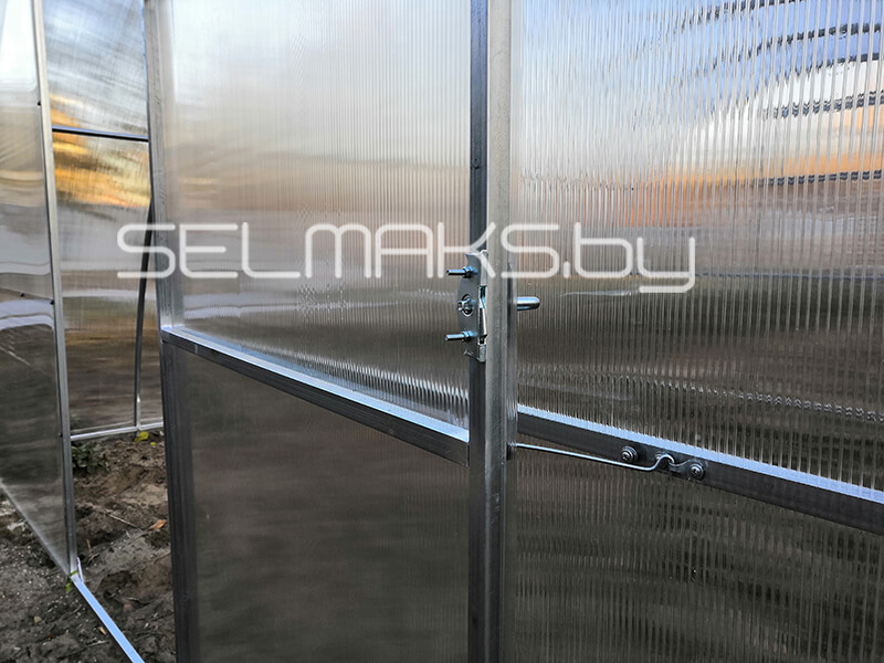 В комплекте идут две двери и две форточки, которые обеспечивают правильный режим проветривания, создающий благоприятный микроклимат для получения богатого урожая в теплице.