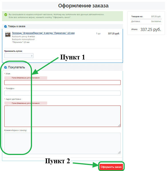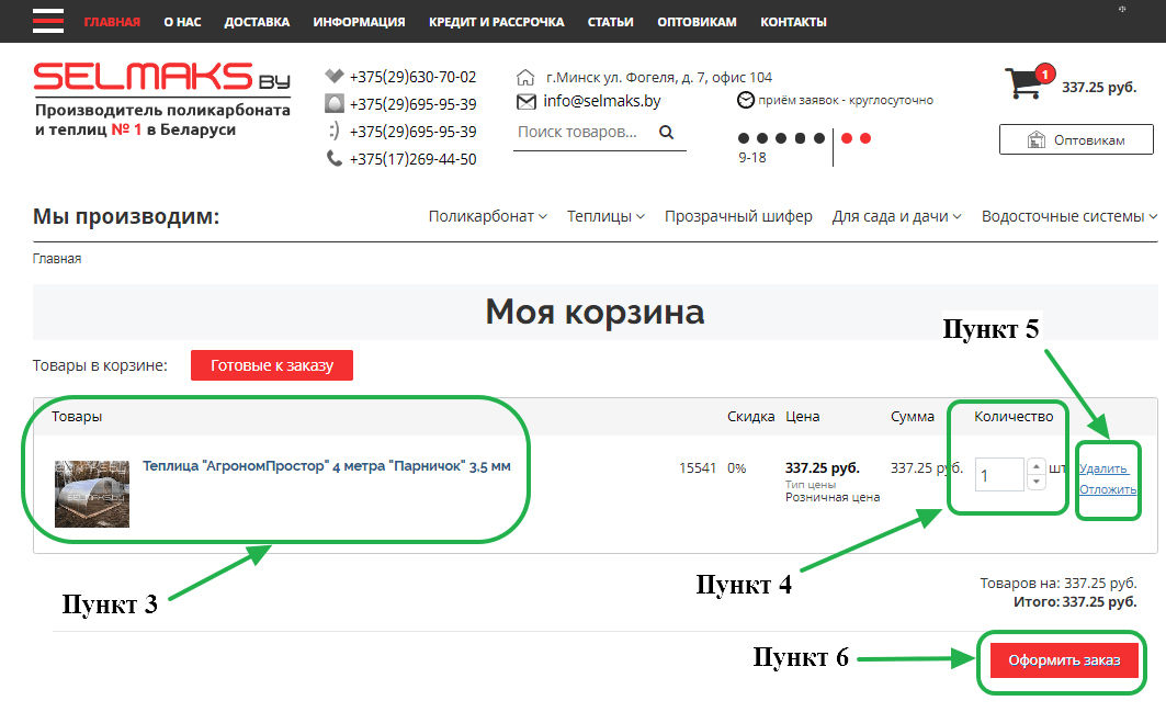 Процедура покупки товара на нашем сайте очень проста и состоит из нескольких шагов.