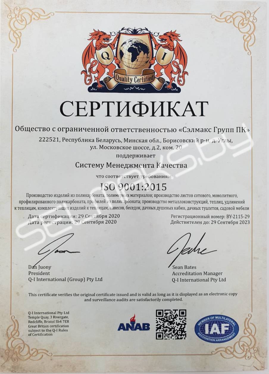 Здравствуйте! Хочу поблагодарить «Сэлмакс» за качественную работу! Теплицу доставили быстро и установили тоже быстро. Спасибо большое, буду рекомендовать своим знакомым именно вас!