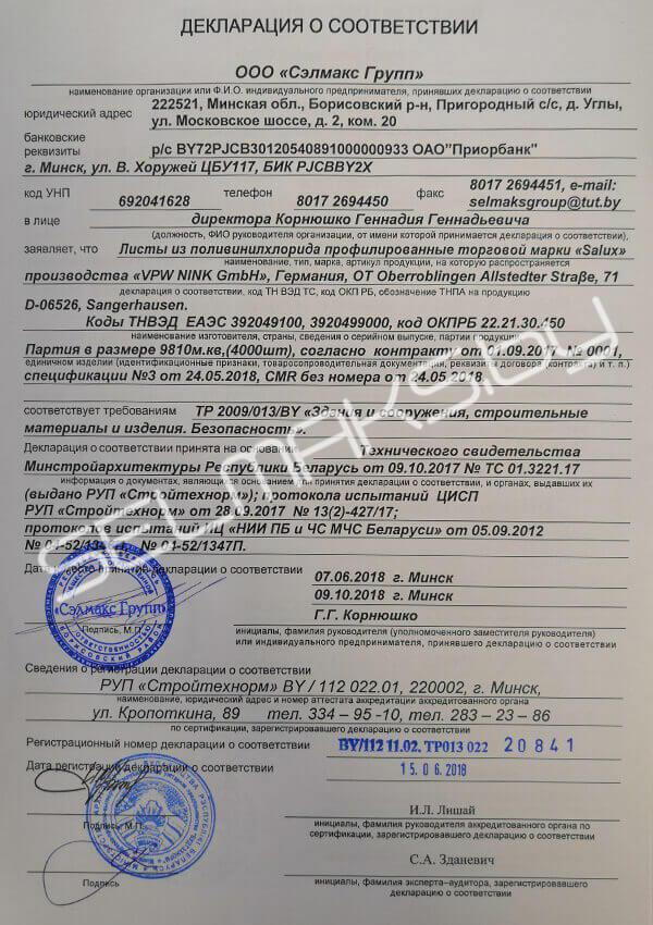 Очень хороший поликарбонат, служит уже не первый год. Перед покупкой в офисе показали большое количество образцов. Сервисом остался доволен