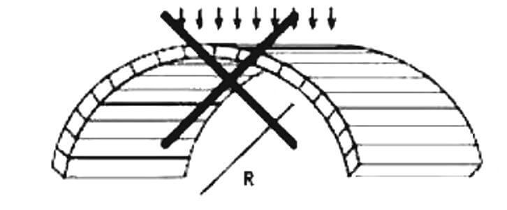 Листы сотового поликарбоната должны монтироваться таким образом, чтобы ребра жесткости/каналы поликарбоната располагались строго сверху вниз для выхода конденсата и отвода влажности. Ребра жесткости листов поликарбоната распределяются по длине. Если панель устанавливается вертикально, то каналы располагаются по вертикали. В дугообразных конструкциях каналы должны быть параллельны линии изгиба. В конструкциях наклонного типа — по направлению ската.
