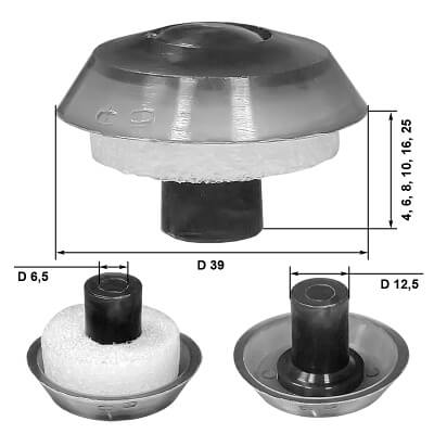 Этот вид шайб родственен поликарбонату, что позволяет не только красиво с ним сочетаться, но и сделать более надежное крепление, благодаря совместимости химического состава материалов и одинаковой термической деформации. Термошайба служит для компенсации термических расширений листов сотового поликарбоната, а также для герметизации места крепления сотового поликарбонат к конструкции. Она состоит из пластиковой шайбы с ножкой, уплотнительной шайбы, защелкивающейся крышки для закрывания самореза и рассчитана на панели из сотового поликарбоната толщиной от 4мм до 32 мм. Термошайба производится в форме гриба со шляпкой и ножкой. Ножки термошайбы имеют длину, соответствующую толщине поликарбонатного листа, плюс толщина прокладки, которая расположена между поликарбонатом и шляпкой термошайбы. Стоит отметить, что ширина ножки, как и ширина шляпки, остается одинаковой.