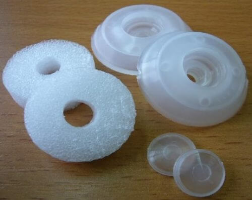Преимущество полипропиленовых термошайб в дешевизне и большом разнообразии цветов. Данные изделия изготавливаются в прозрачном и цветном исполнении, что позволяет их гармонично сочетать с цветом кровельного или фасадного покрытии. Размер полипропиленового крепежа составляет 35 мм в диаметре и 12 мм по высоте. Внутреннее отверстие позволяет использовать шурупы толщиной 6 мм.