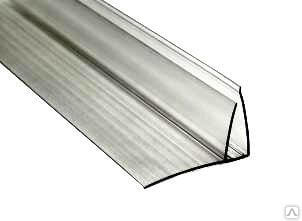 Используется при стыке поликарбоната с капитальными стенами — например, для крепления скатов пристенных теплиц. Обеспечивает теплоизоляцию стыка и предотвращает затекание воды между скатом теплицы и стеной. Длина профилей – 6 м, толщина от 6 до 25 мм.