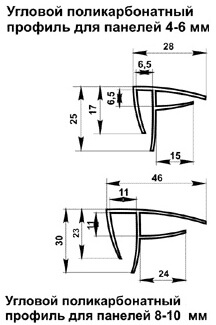 С помощью углового профиля можно соединить панели поликарбоната одинаковой или разной толщины, сотовый и монолитный поликарбонат.