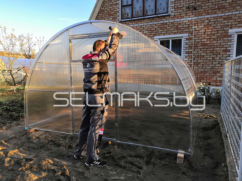 Наши исследования показывают, что на 50% теплиц производимых в Беларуси не насверлены монтажные отверстия под поликарбонат. А это значит, что Вам нужно будет просверлить 159 отверстий, что бы собрать теплицу длиной 4 метра, или более 200 отверстий – для теплицы длинной 6 метров. Гарантированно - когда Вы будете сами сверлить отверстия под крепление поликарбоната, Вы не один раз проткнете поликарбонат в ненужном месте. Сверло соскальзывает, саморез со сверлом соскальзывает и битой, естественно, случайно Вы пробиваете отверстия.