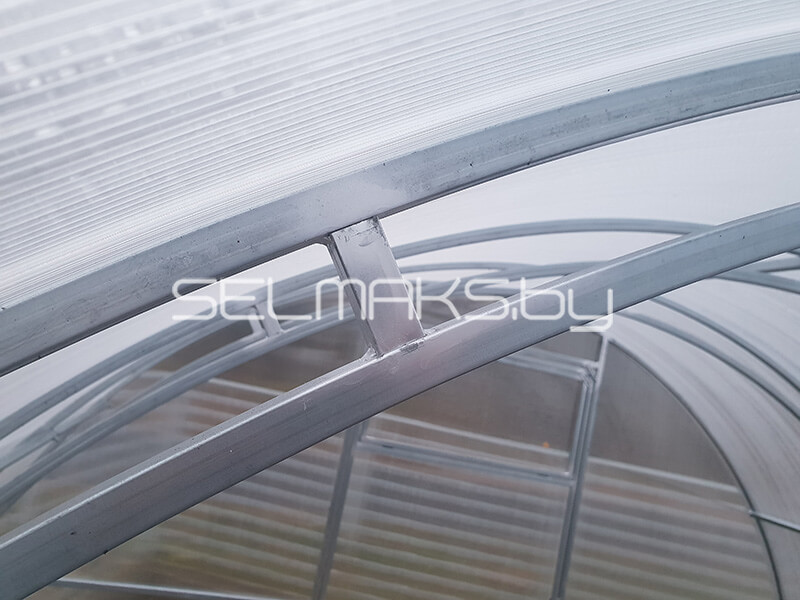 Такое соединение у наших теплиц. Цельное соединение без лишних швов более надежно и крепче.