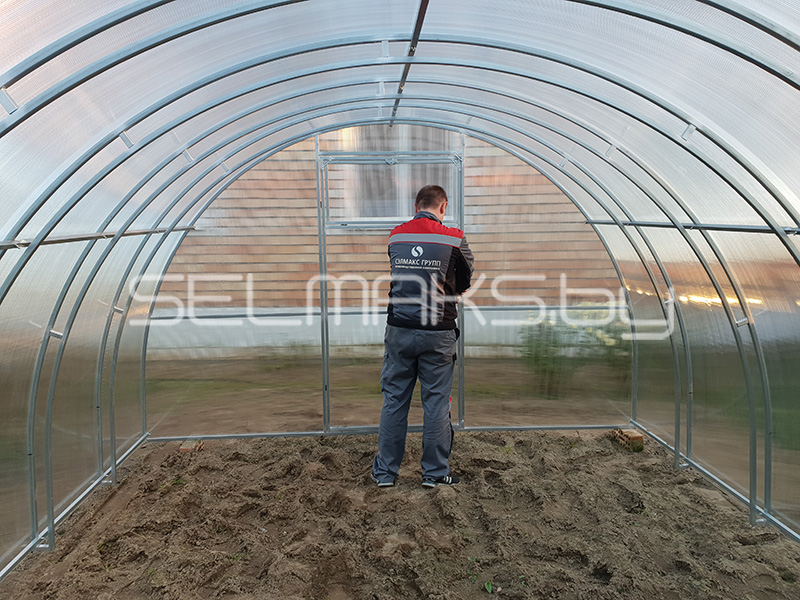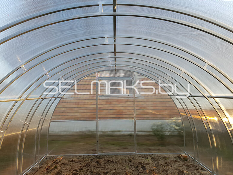 Мы производим теплицы в промышленных масштабах. Производим теплицы как для тепличных комплексов, так и дачных хозяйств. Производим для Беларуси, России, Евросоюза. Мы сами производим и теплицы и поликарбонат.