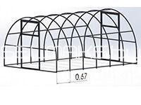 Немаловажным аспектом при выборе теплицы является расстояние между дугами. Мы производим теплицы с шагом дуги 67 см и 1 м. Чем меньше шаг дуги, тем прочнее будет изделие, так оно будет успешно противостоять не только завалам снега, но и сильным, нередко ураганным ветрам. Для теплиц с расстоянием между дугами 1 м предусмотрены усилители дуг.
