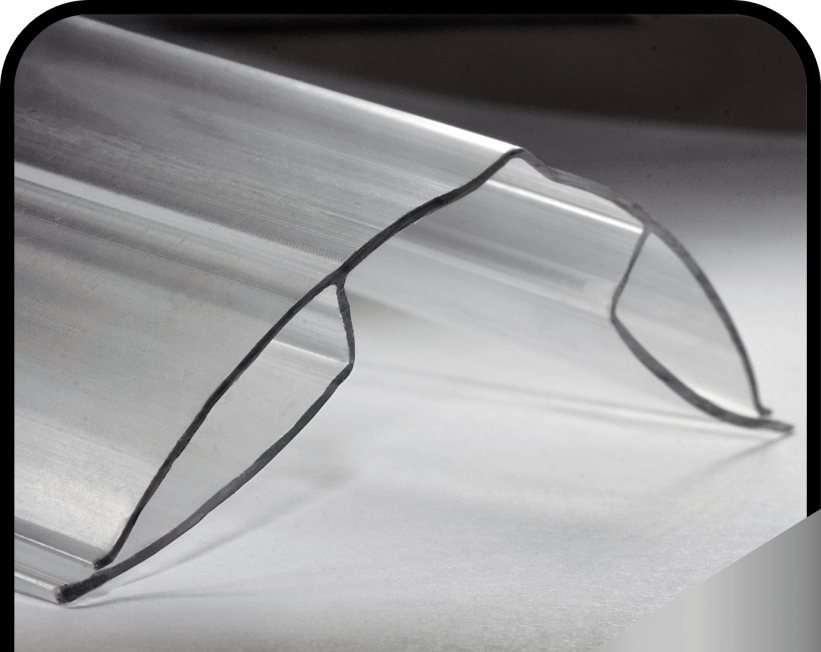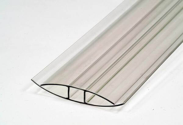 Н-образные прозрачные поликарбонатные профили используются также в производстве наружной рекламы и интерьерных конструкций для надежного и при этом незаметного соединения панелей сотового поликарбоната и других листовых пластиков. Неразъемный профиль идеален для стыковки поликарбонатных листов в вертикальном положении (офисные перегородки, рекламные щиты, световые короба и т.п.).