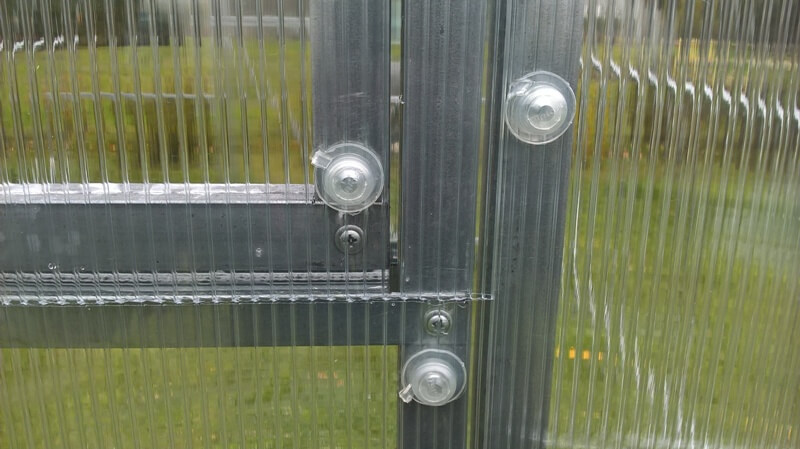 При монтаже теплиц используется редко, так как цена его выше, чем неразъемного профиля, а функциональность одинакова. Но когда речь идет о конструкциях, которые имеют нестандартную форму и большие размеры, то использовать неразъемные профили не получится. При обустройстве теплицы-оранжереи или зимней теплицы из толстого поликарбоната специалисты рекомендуют использовать именно разъемный профиль. Работать с разъемными профилями на сложной конструкции удобно, при этом используются термошайбы, которые обеспечивают хорошую надежность конструкции. Можно сгибать, поворачивать, подгибать конструкцию и не боятся, что система сломается.