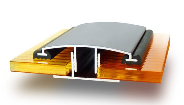 Соединение листов поликарбоната с помощью алюминиевых профилей является самым качественным. Это соединение выглядит более эстетичным по сравнению с поликарбонатными профилями. Данная система профилей особенно рекомендуется для создания покрытия или остекления отапливаемых помещений, когда основополагающим требованием к конструкции является теплоизоляция. Алюминиевые системы предотвращают мостики холода и места терморазрыва в конструкции и относятся к группе "теплых" профилей. Так же эти профили обладают лучшей герметизацией мест соединения листов, за счет резиновых уплотнителей в своей конструкции,что полностью исключает вероятность протечек даже при самых неблагоприятных погодных условиях.