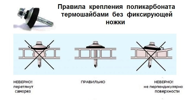 Для гарантированного предотвращения смятия листов удобно применять термошайбы со специально ножкой, которая фиксирует положение шайб. Высота этой ножки подбирается равной толщине устанавливаемых листов.
