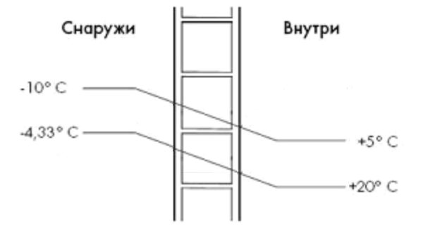 - численное значение R, также, показывает, какую разницу температур (температурный перепад в оС) у внутренней и наружной поверхностей конструкции обеспечат ее теплозащитные свойства при мощности теплового потока = 1 Ватт, проходящего через 1 м2 поверхности этой конструкции.